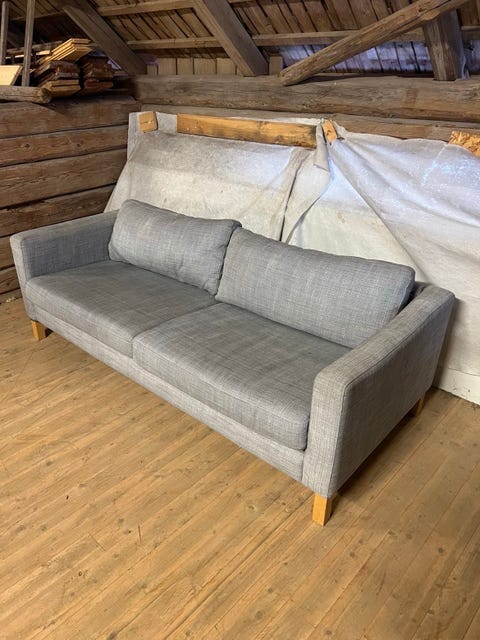 Välskött soffa i rustikt tyg.