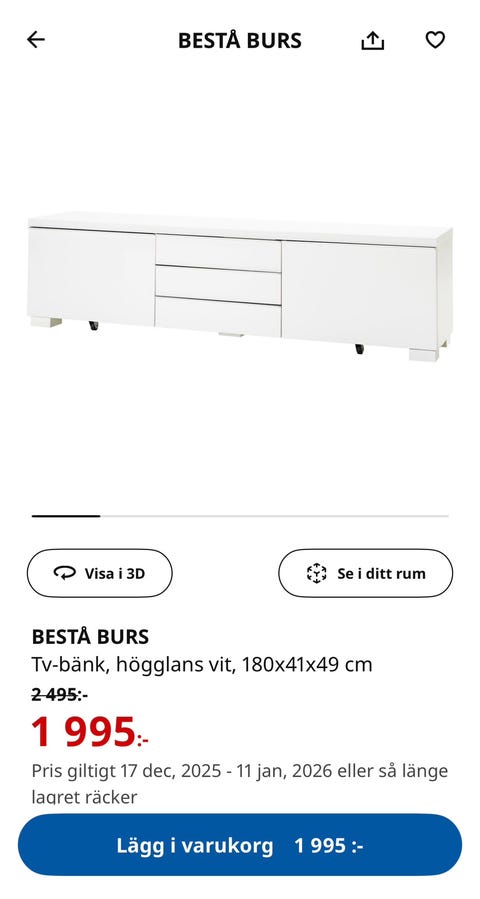 2 600 krSideboard BESTÅ SUPERFRONT (Stommar, Fronter och Ben) IKEATorslanda28.12.25Lägg till i favoriter.
