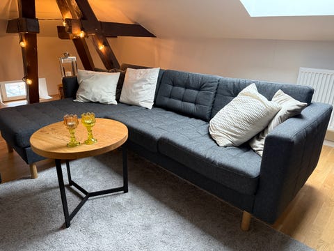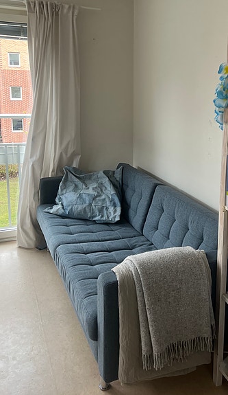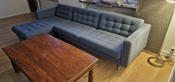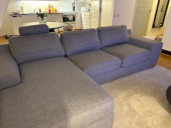 Jysk hörnbäddsoffa med schäslong grå tyg