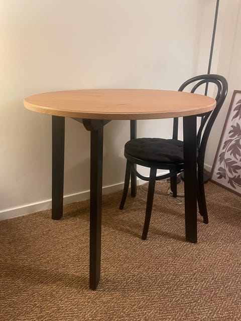 499 krIkea soffbord med rund glasskiva och svarta sittpuffar IKEATrollhättan10 febLägg till i favoriter.
