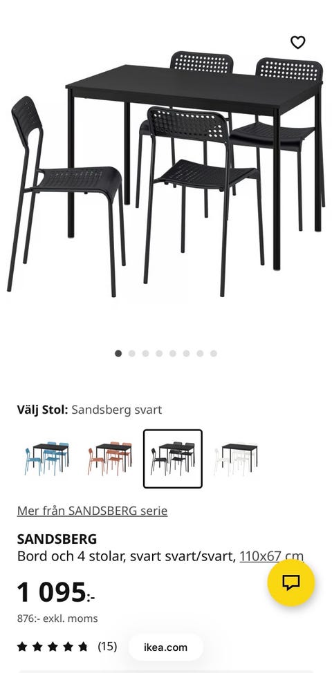 500 krIKEA Alfred Homann matgrupp runt bord vit med svarta stolar IKEARosersberg4 dagarLägg till i favoriter.