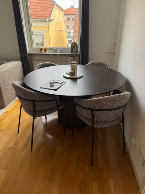 3 700 krMatgrupp Mio runt svart matbord 120 cm & 5 st karmstolar Sharon Mio MioStockholm4 dagarLägg till i favoriter.