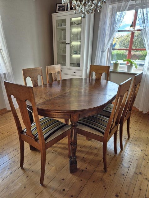 Ekbord med 6 stolar – fynd!