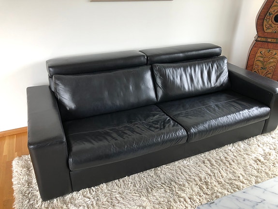 Svart läderbäddsoffa till salu