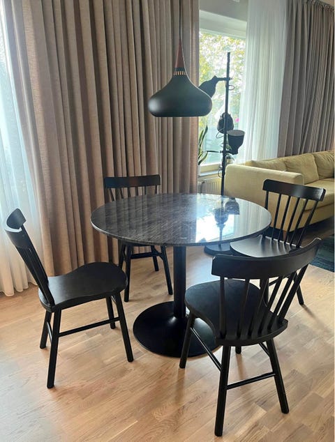 Matbord med pinnstolar.