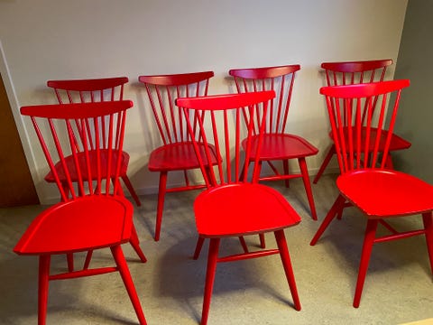 Fynda röda stolar till jul