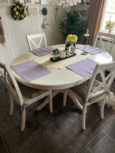 Runt matbord och fyra stolar