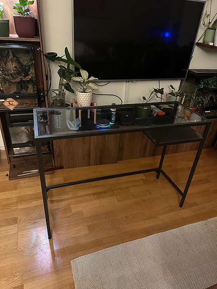 200 krLitet bord / skrivbord / sminkbord med svart glasskiva IKEASollentuna12 aprLägg till i favoriter.Öppna annons
