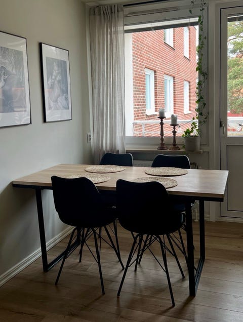 Matbord och stolar i trä