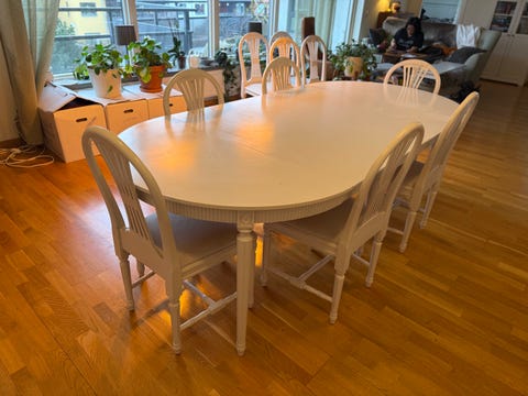 600 krKöksbord IKEA, 2 inläggskivor, 140-220 cm (4-8 personer) + 4 stolar IKEAStockholm21 timLägg till i favoriter.