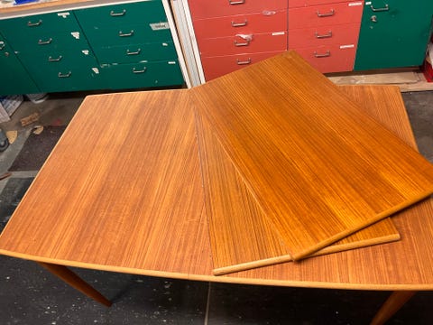 Nyrestaurerat matbord i teak