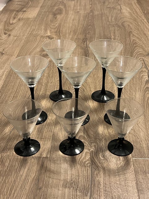 Svart TV-bänk med glas och lådor