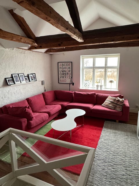 Retro soffa i rött tyg