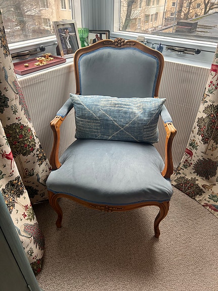 Antik blå fåtölj