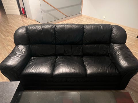 Svart skinnsoffa/bäddsoffa