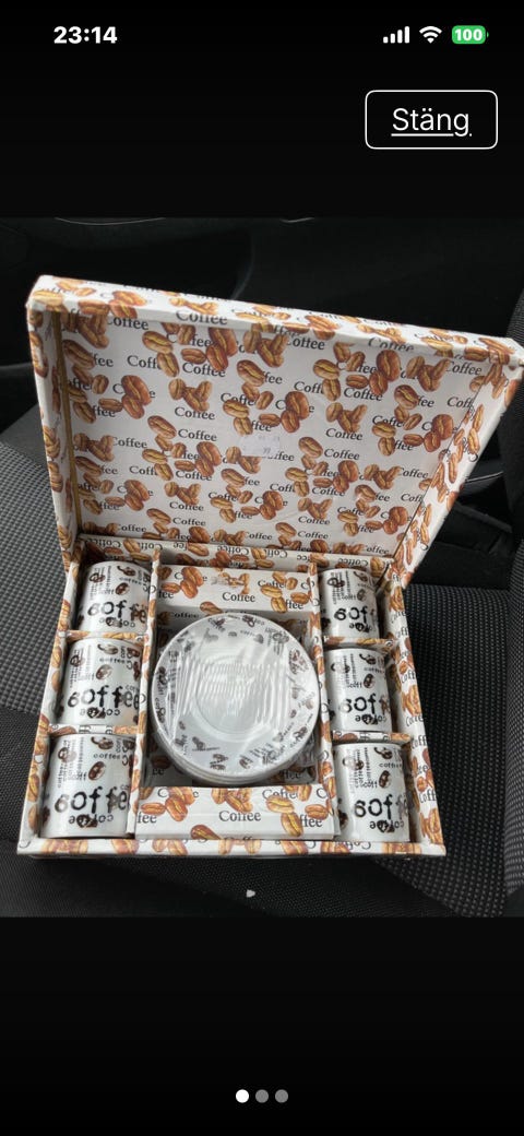 99 krKaffeservis 6 delar vit med kaffemotiv ArabiaLandskrona23 minKöp nuLastbil i rörelseKan skickasLägg till i favoriter.