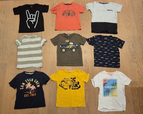 Det är alltid bra att ha tillräckligt med barnkläder så att du slipper tvätta hela tiden. Försök hitta dessa plagg begagnat: till exempel blir babybodys snabbt smutsiga, och det är praktiskt att ha många i en familj med småbarn. Fina barntröjor och klänningar växer barnen ofta ur efter bara några användningar och det är smart att sälja dem vidare för att förlänga klädernas livslängd. När det gäller ytterkläder kan vinter- och mellansäsongens overaller köpas begagnade, särskilt de från kvalitetsmärken som klarar av flera barns lek i snö och slask.