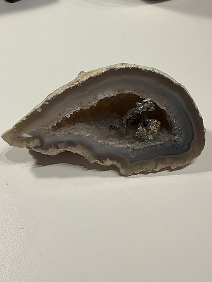 Tenngruvarbetare-figur på naturlig agatgeodbas - Unik samlarobjekt