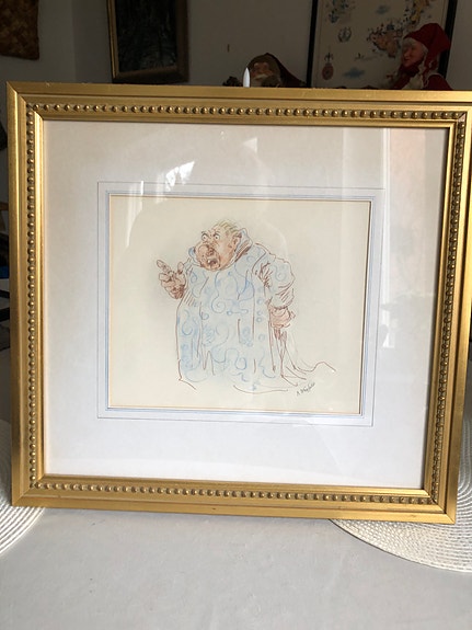 Signerad akvarell i guldram av Rober Högfeldt– karikatyr av man i rock