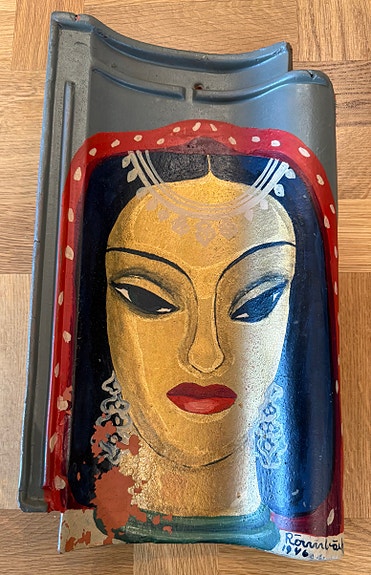 Aina Rönnbäck - 1946? - indisk kvinna - målning på takpanna