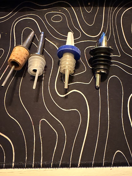 Blandade flaskproppar och hällpipar kökstillbehör plast metall kork