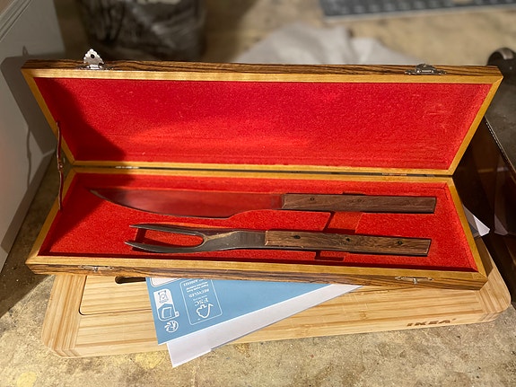 Rostfritt stål trancherset med trähandtag i etui - Vintage