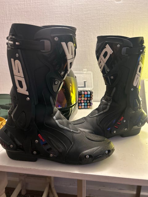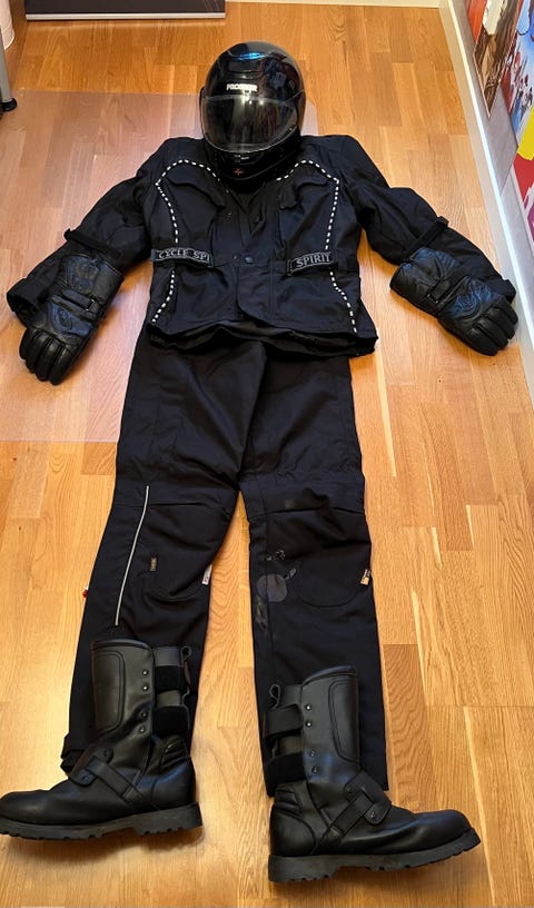 Mc-kläder, hjälm och stövlar