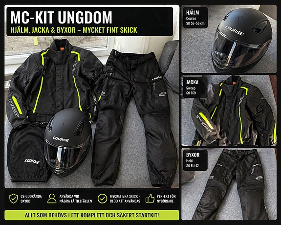 På Blocket kan du kanske hitta en motorcykeljacka som passar dig, en annorlunda körjacka eller helt enkelt alla de kläder du behöver för att ta en tur ut i det blå. Cross-stövlar och byxor hittar också lätt nya ägare på Blocket.