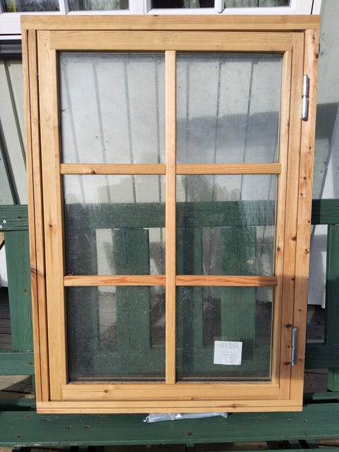 Fönster, karmmått 670 x 945 mm, obehandlat furu.