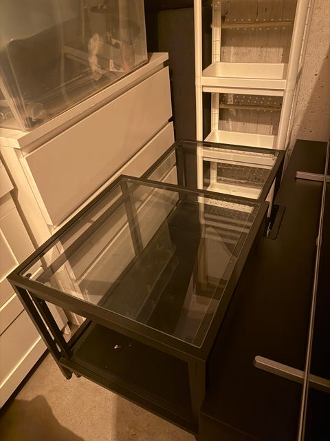 499 krIkea soffbord med rund glasskiva och svarta sittpuffar IKEATrollhättan10 febLägg till i favoriter.
