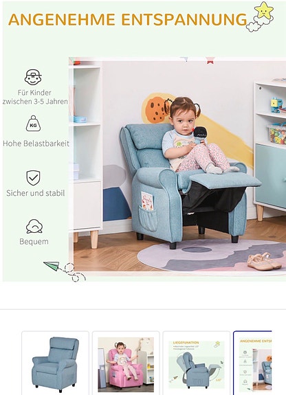 Barnfåtölj med recliner – blå (HOMCOM) – NY