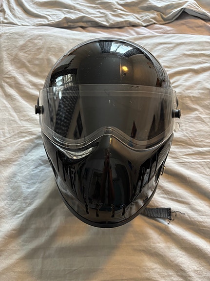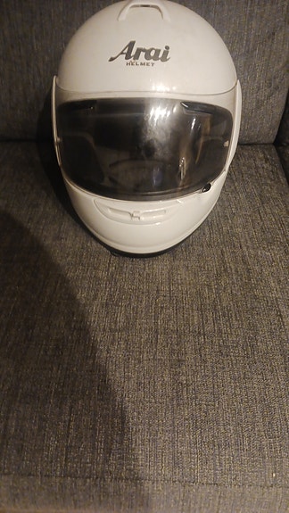 Begagnade motorcykelhjälmar och hjälmhuvor