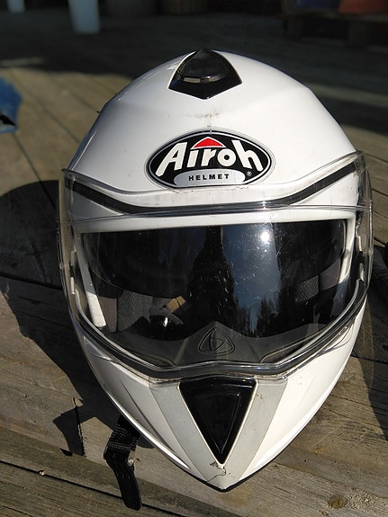 Airoh och Arai motorcykelhjälmar och 1 par Bikers handskar