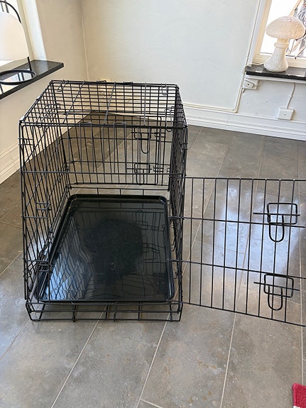 100 krSvart ihopfällbar hundbur i metall med plastbottenLomma28 minLägg till i favoriter.Öppna annons