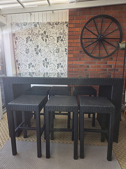 2 250 krStilren bargrupp med 6 stolar i svart konstrotting – perfekt för uteplatsenSpånga3 timLägg till i favoriter.Öppna annons