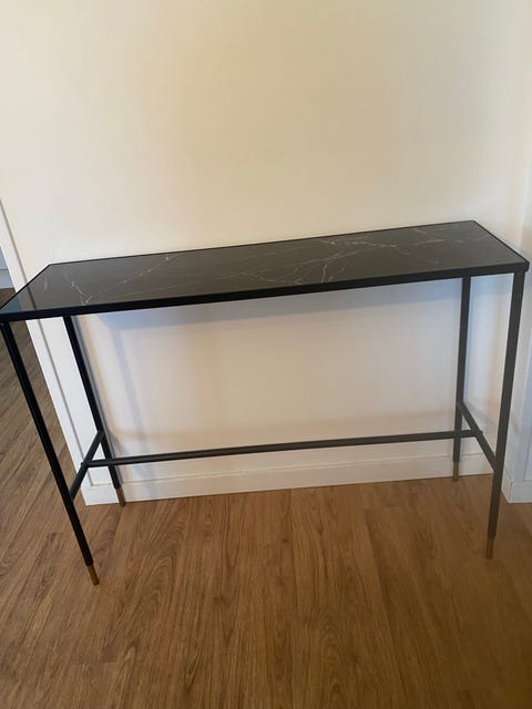 Svart liten byrå med stenskiva