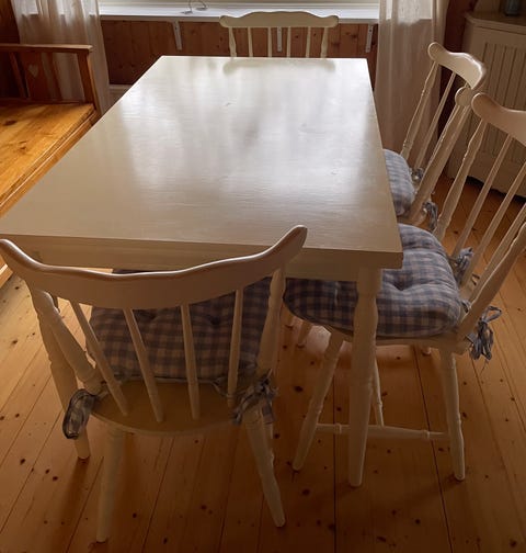 300 krMatbord för familj och fester inkl 4 stolar med extra tvättbart överdrag.Hanaskog3 febLägg till i favoriter.