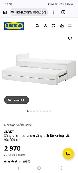 1 900 krNYSKICK IKEA säng med madrass skårer + näsfjället IKEAFarsta4 dagarLägg till i favoriter.Öppna annons