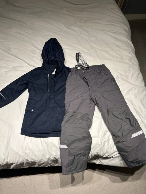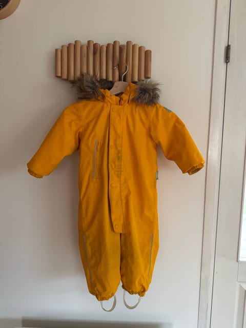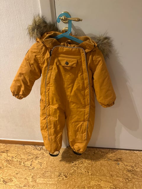 Under vintern är det viktigt att hålla de små varma med rätt kläder: ulliga heldräkter, sockor, vantar, mössor och ytterkläder. En overall är ofta snabbare att ta på än separata jackor och byxor, och snön har svårare att tränga in. I annonserna bör du kolla skicket på ytterkläderna, till exempel hur bra muddar och ben kan justeras, om det finns många reflexer och om kläderna är vattentäta.
