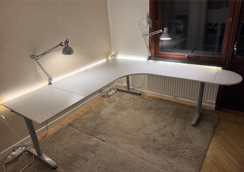 Ett skrivbord som inte längre behövs av någon annan kan vara precis vad du letar efter. Särskilt skrivbord i massivt trä eller elektriska skrivbord kan vara kostsamma, men du kan hitta ett passande alternativ betydligt billigare begagnat. Ett bra skrivbord har en höjd som passar användaren eller kan justeras efter behov. När du bläddrar bland annonserna - se till att kolla bordets mått och jämför dem med den bästa arbetshöjden för dig.