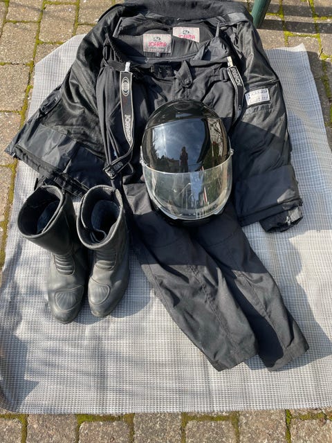 Mc-kläder, hjälm och stövlar