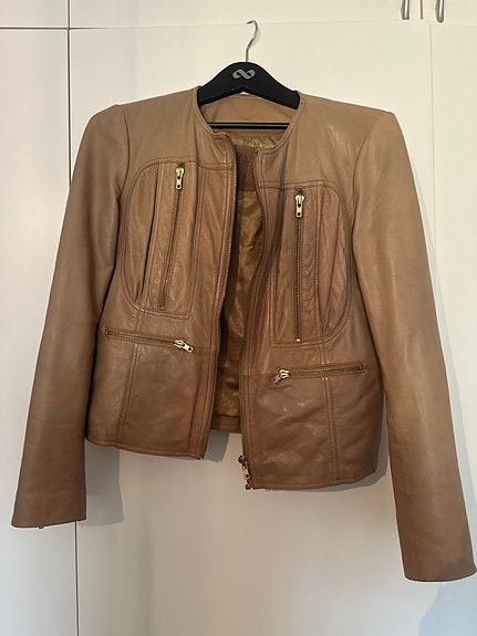 Tiger of Sweden - brunsvart jacka / kappa i 100% äkta päls & läder - storlek 38