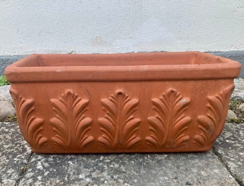 Italienska blomlådor i terrakotta med dekorativt mönster