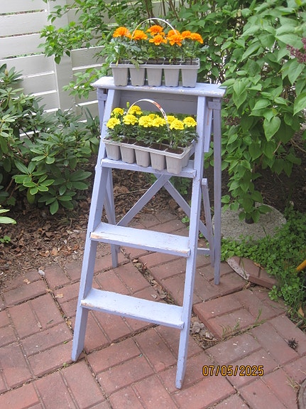 Trästege,Trädgårdsstege,Retrostege,Trädgårdsdekoration,Målarstege