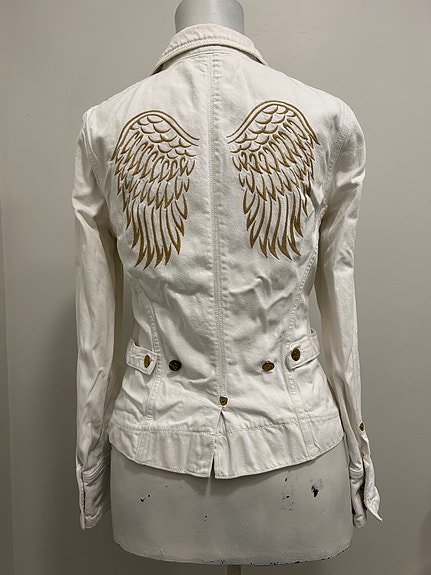 J & Company jeansjacka – vit med guldvingar, stl L