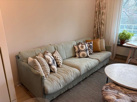 Om du funderar på att köpa begagnade möbler är det bra att ta exakta mått på den plats du har tillgänglig i ditt hem. Jämför sedan med måtten i annonserna. Kolla också om soffan har avtagbart och tvättbart överdrag eller andra skötselråd. Genom att köpa begagnat ger du möbler nytt liv och sparar samtidigt pengar.