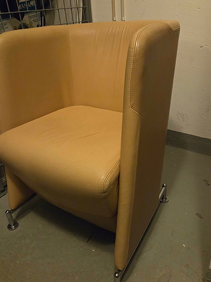 9 000 krLounge Ottoman design fåtölj med sittpall beige läder valnöt trä detaljerStockholm14 marLägg till i favoriter.Öppna annons