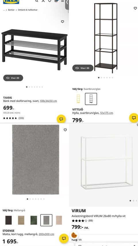 Affärsverksamhet (8 983)Bygg och trädgård (36 711)Djur och tillbehör (14 810)Elektronik och vitvaror (58 706)Fordonstillbehör (22 039)Föräldrar och barn (52 476)Kläder, kosmetika och accessoarer (64 296)Konst och antikt (13 837)Möbler och inredning (117 792)Sport och friluftsliv (48 678)Underhållning och hobby (34 843)