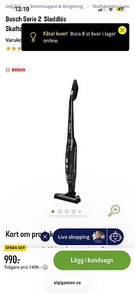 500 krBosch sladdlös skaftdammsugare svart BoschÖrebro35 minKöp nuLastbil i rörelseKan skickasLägg till i favoriter.Öppna annons