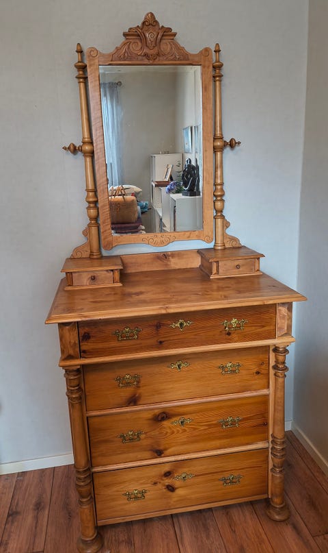 Byrå med spegel i furu